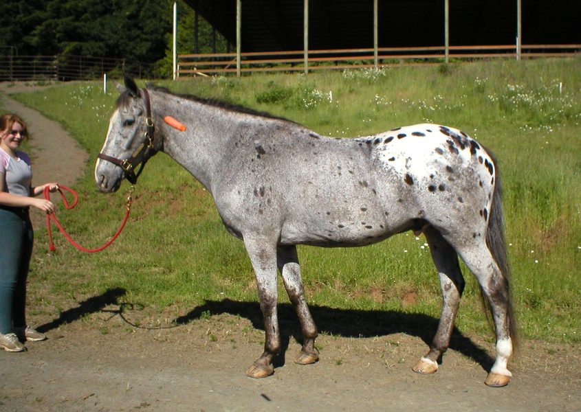 I was teaching in Coos Bay when a student of mine told me about this really large Appaloosa that was for sale. He was owned by a Coos County Posse member and was used to park cars at the fair and do other miscellaneous Posse things. He was part Thoroughbred (which explained his size of 17 hands) and had a beautiful mane and tail for an Appaloosa. I always had a soft spot for appaloosas since my good event mare was an appaloosa and I’d dealt with many throughout my career. I never minded their strong, smart personalities. I tried “Cowboy” and liked him, although he was starving and was hauled to me in a stock rack on the back of a pickup truck. It was the funniest sight I had ever seen, this huge Appaloosa towering over the top of the truck. I paid $900 for him on January 14, 1989 and changed his name to “Gus” after the Lonesome Dove character played by Robert Duvall. The two were so much alike, just the most lovable gentlemen.