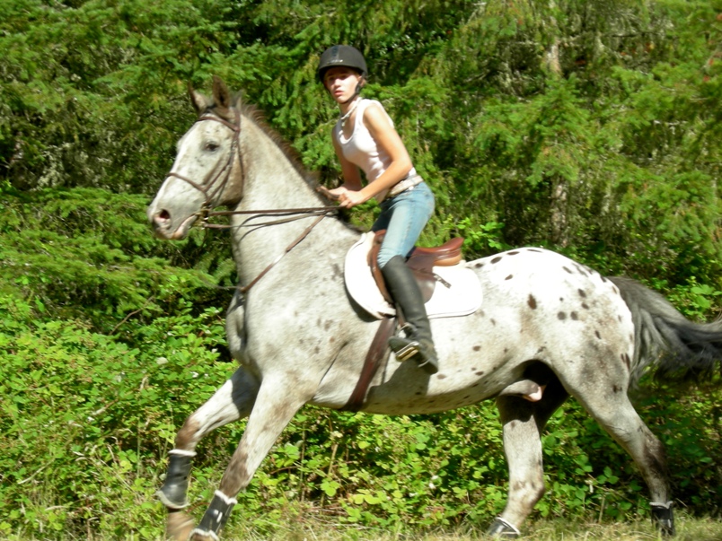 I never rode Gus, but I certainly watched a number of others who did. He carried small children on his back for their first leadline class at horseshows (with a bit of an indignant look on his face to have been relegated to a school horse when he thought he was still a show stopper) and when Sandy Miller climbed aboard he got that appy glint in his eye that I imagine he had with Norma in the jumper ring during his younger years. A couple of summers ago I was spotting on the little cross country course that goes through the trails at Wildtree Farm and watched as first a wiry, flea-bitten thoroughbred trotted cautiously up to the little logs and hay bales, and then a galoot of a bay came crashing a bit clumsily down the wooded path, and finally Gus- flashing swirls of gray and white, ears pricked, spry like a 5 year old and Amelia on him bareback- all smiles and laughter. It was a picture of free-spirited joy and it is what I like to think he is doing now.